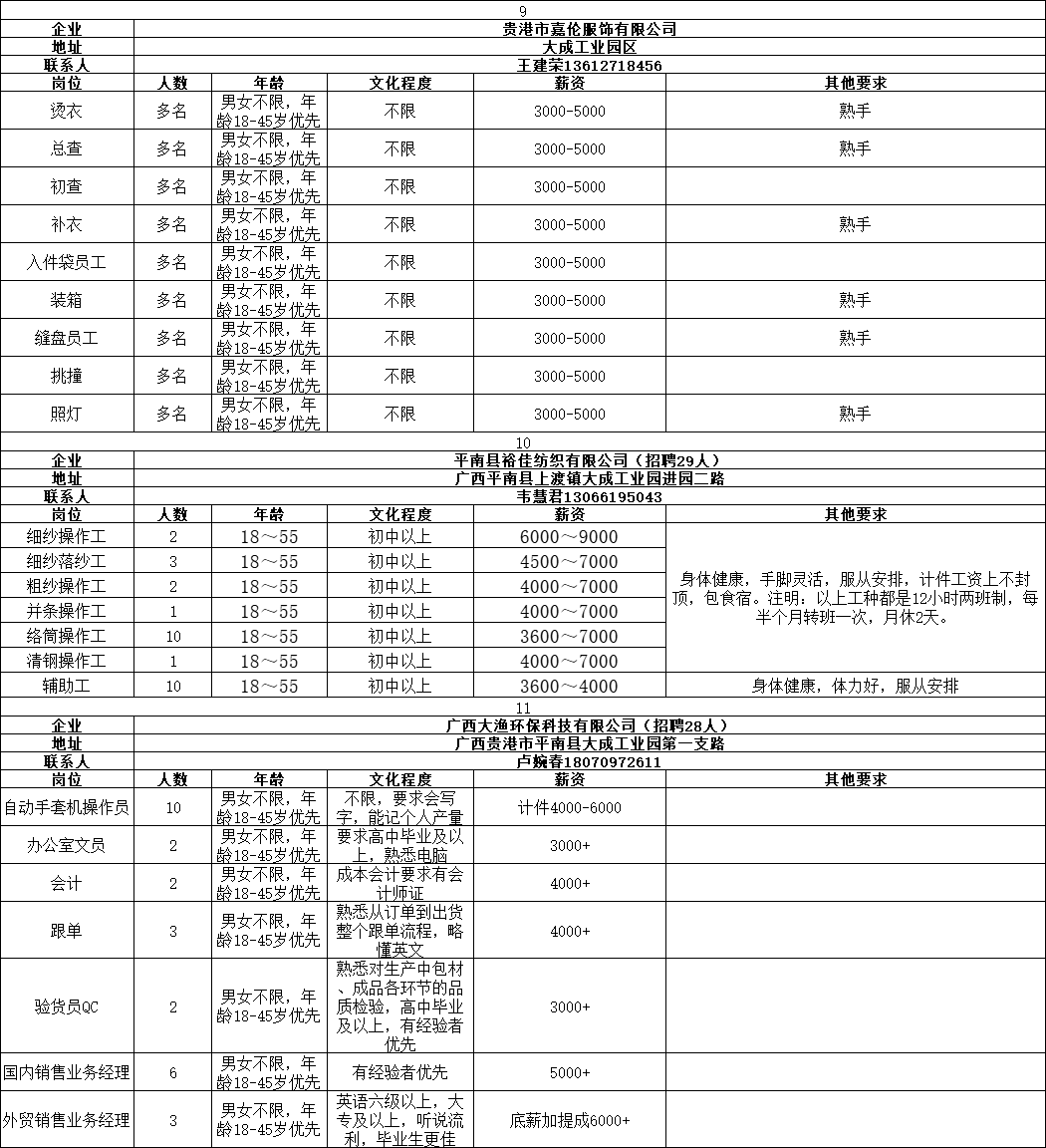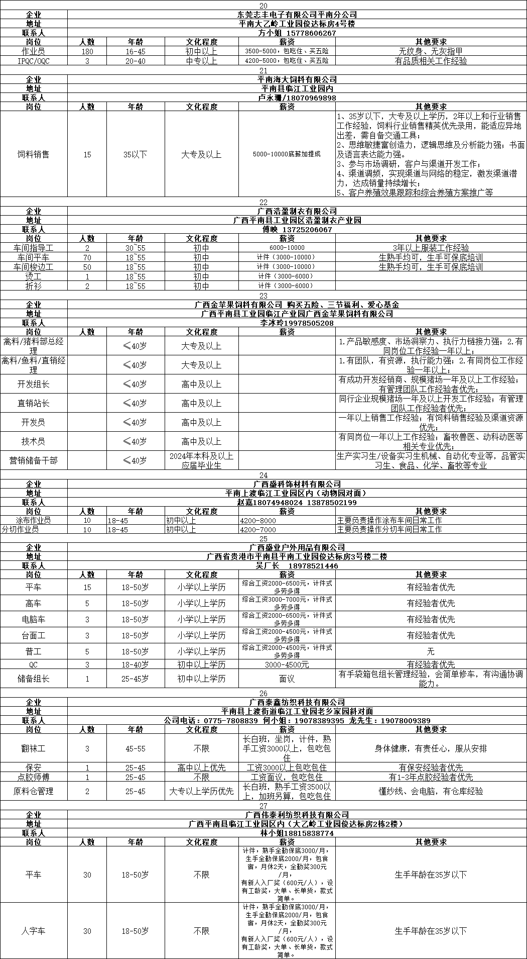 三月份招聘专栏: 平南这些企业正在招聘,岗位多多,快来看看吧